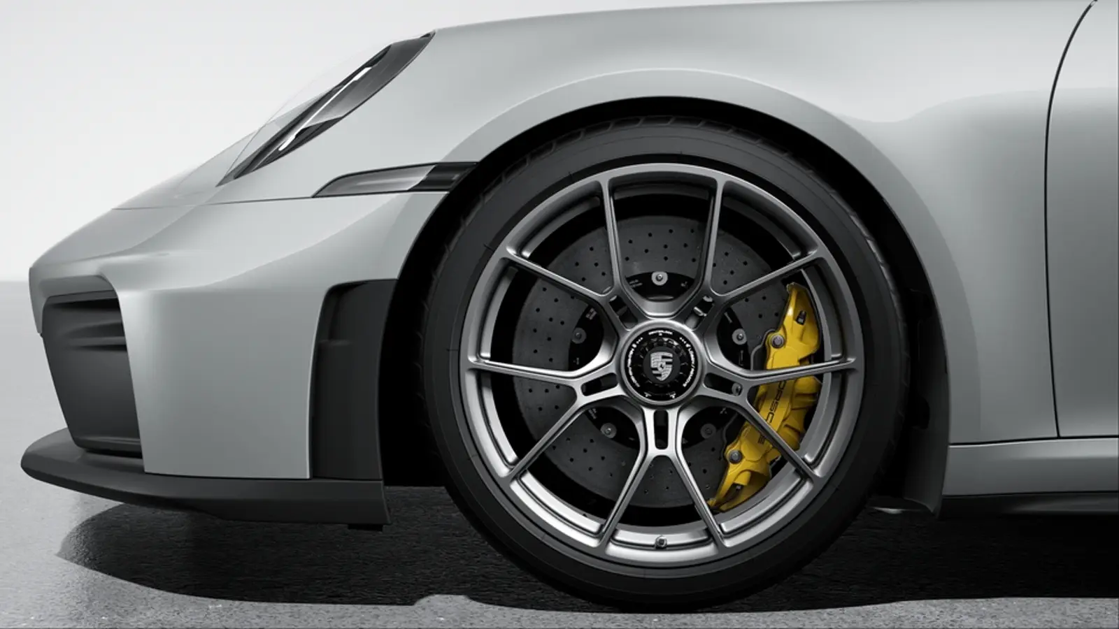 The distinctive yellow calipers are an easy giveaway for Porsche's ceramic brakes