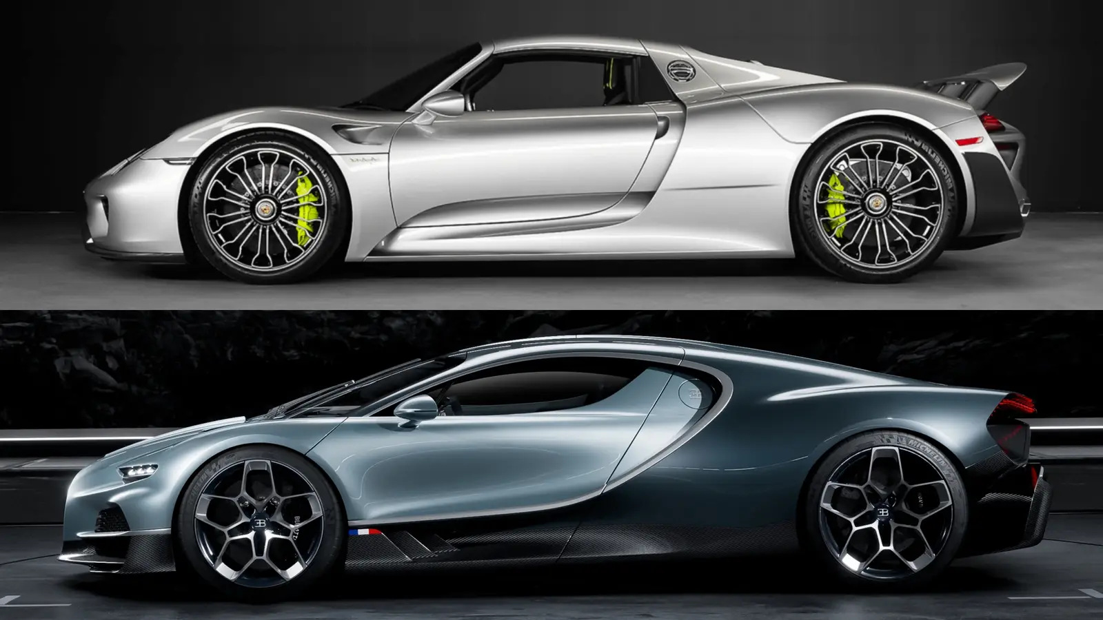 The Porsche 918 Spyder and the Bugatti Tourbillon are hybrid hypercars, just not from the same era