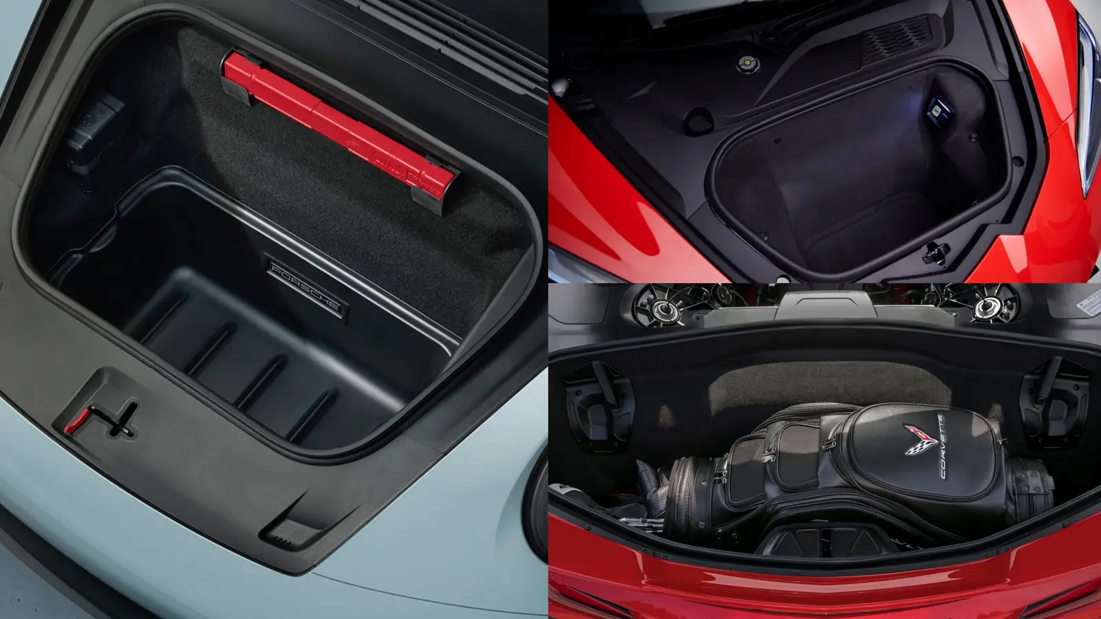 Here, the Corvette E-Ray with its two trunks wins hands down with 12.5 cubic feet of cargo capacity, outclassing Porsche’s 4.8 cubic feet up front.